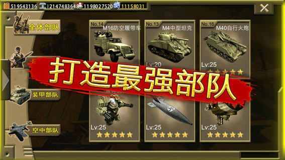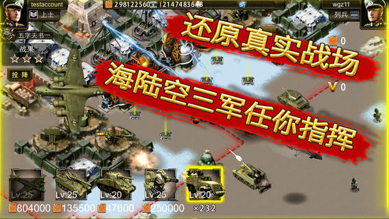 消灭掉敌人,赢得胜利才是每个将军的终极目标,解锁升级各种部队,根据敌人的防守阵线,运用不同的兵种的进攻方式,选择不同的进攻路线,用最少的消耗,赢得胜利,获得战斗力,并向元帅军衔发起冲击。更新说明