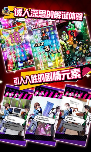 《18梦境异闻录》游戏由Mobcast与Monstars共同开发,并由日本叁大游戏制作人之一水口哲也亲自监制,号称超烧脑型探侦RPG的宝石消除手游。游戏的舞台是在一个奇特的「梦世界」里,游戏内的主角总是会梦到此地,直到遇上一只名叫「神崎」的会说话的猫咪后,他的命运之轮就开始转动。由于一种叫做「睡美人症」的现象在现实世界中蔓延扩张起来,许多女性因而一觉就不起,但实际上她们是被困在这个「梦世界」之中,主角就是为了拯救这些迷失在梦境中的女孩而展开他的冒险旅程。他与神崎将不断深入梦境,并且找出隐藏在事件背后的真相。
