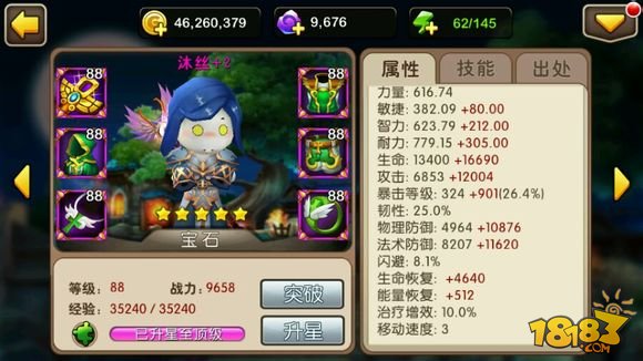 呆贼宝石搭配:力量,敏捷,攻击,物防