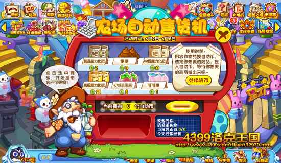 农场自动售货机开卖咯!使用农场作物兑换自助币,然后点击你想要的商品,投入自助币就可以了啦!