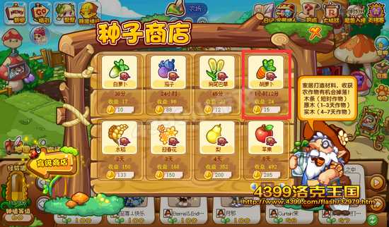 如果洛克们没有相对应的农作物,可以去商店购买种植!胡萝卜就在商店的第一页哦!
