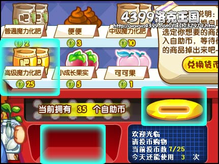 4、小编选择了高级化肥,玩命投币后,化肥到手啦!点击高级花费,就可以获得他哦!